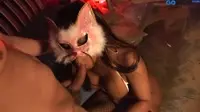 In a dimly lit room, Ravenous Kittie, a fiery and insatiable woman, stands with her back against the wall.Her man enters the scene, clad in nothing but his tight, leather underwear, revealing a bulging, erect cock underneath.He stares hungrily at the voluptuous figure before him, unable to resist the temptation any longer.He gently approaches Ravenous Kittie, his hands already yearning for her firm body.His gaze meets hers as their eyes lock in unbridled passion and desire.The air around them thickens with sexual tension as they share an unspoken agreement that their desires must be sated.Slowly, Ravenous Kittie lowers herself onto her knees before her man, taking him into her eager mouth, devouring him like a starving woman, her skilled tongue teasing his sensitive cockhead and causing him to shudder in delight.He gently wraps his fingers around the back of her head, guiding her movements as she deepthroats him with increasing ferocity.Her eyes glaze over with a lustful haze as her own need for release grows more pronounced.The man, now fully captivated by her raw appetite and desire, decides it's time to move on to the next chapter of their erotic adventure.Slowly but surely, he eases Ravenous Kittie to her feet before pulling off the mask that she had been wearing, revealing her alluring face as she gazes back at him with eyes filled with pure adoration.Her tongue snakes out to lick her lips in anticipation of what's to come as he presses her against the wall, their bodies melting into one another with animalistic intensity.In a single motion, the man lifts Ravenous Kittie's legs onto his shoulders, positioning her for an unforgettable ride.As she slides herself down onto his rock-hard shaft, they exchange hungry kisses and husky moans, their shared climax rapidly approaching.Each thrust sends shivers down her spine, her tits bouncing with each powerful motion as the room fills with the sound of their uninhibited lovemaking.Her man's hands firmly grip Ravenous Kittie's hips, providing just enough stability to keep their feverish pace in sync.Her eyes roll into the back of her head as she experiences the sheer fun and power of his cock driving deep inside her with each ecstatic surge.As their bodies tremble from the unrelenting passion, an orgasmic intensity builds within them both - one that can no longer be contained.The man's seed splatters across Ravenous Kittie's tanned skin, leaving a tangible reminder of their ferocious love-making and deepening their already powerful connection.As they catch their breath and embrace in an all-encompassing hug, they share the exhilaration that only a truly passionate experience can bring.The air around them remains thick with the heady scent of sex, leaving an indelible impression on both their bodies and souls.This passionate scene between Ravenous Kittie and her man concludes their feral ride, forever etching itself into their memories as an erotic encounter like no other - one that would be replayed in their minds for years to come.They share a tender embrace, basking in the afterglow of their shared ecstasy, knowing that they had just participated in something truly special.